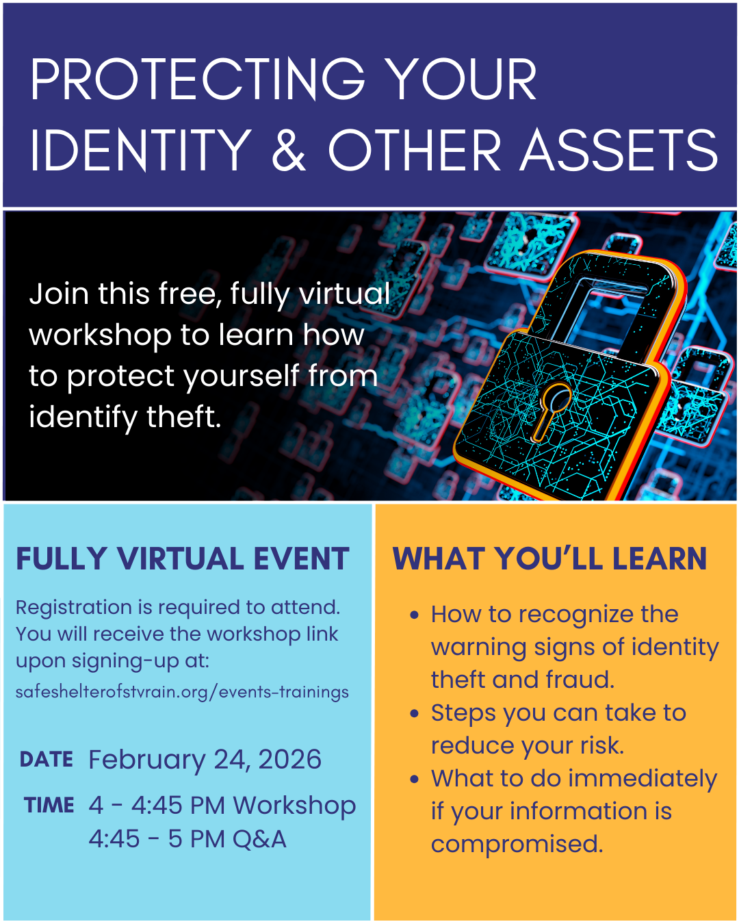 These trainings are open to the community and reflect Safe Shelter’s commitment to addressing the real-life barriers that survivors and community members face. Financial empowerment is a critical part of safety, stability, long-term healing, and self-sufficiency.